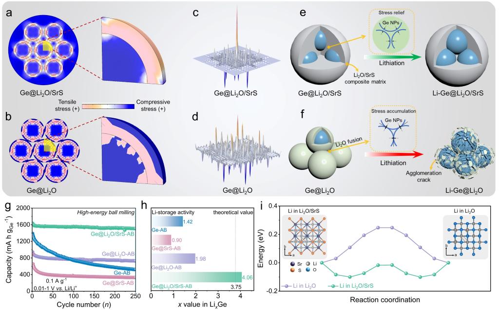 图1. Li2O/SrS基质强化Ge基循环稳定性的机理示意图